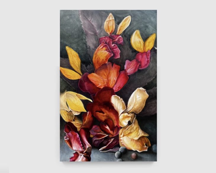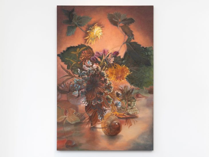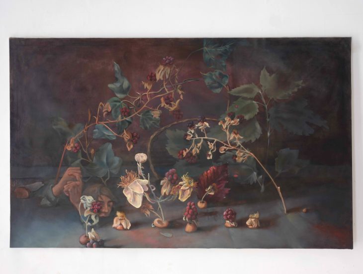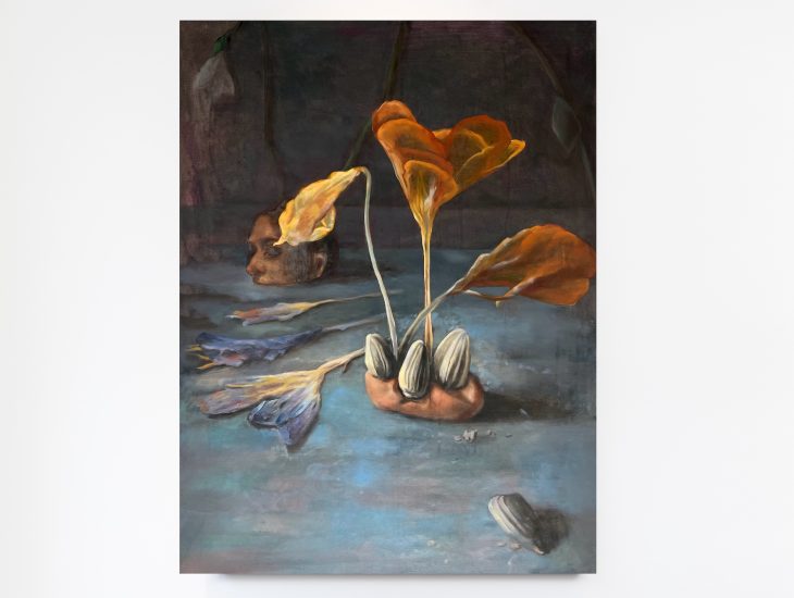 Bread Emerentia with Anemones, Crocus, and Grape Hyacinths, 2026, oil on canvas, 40×30 cmFirst sense of communal life-threatening danger, aged 6, 2022, oil on linen, 130x90cm, 202390% perfect (Crocus, Snowdrops, Sunflower seed), 2022, oil on linen, 89×118 cmIt made me feel like I was getting stronger mentally as I was stronger physically, 2022, oil on linen, 28x35cmMade fictions about self and repeated addendum, 2023, oil on linen, 32×40 cm‘How to Battle Snails (Queen Anne’s Lace, Black Archangel, Dandelion), 2023, oil on canvas, 87×130 cmCan’t believe you are sharing this, this could save the world, 2023, oil on linen, 140×180 cmAnother botanical icon with Anemones and Starlings, 2026, oil on canvas, 15×21 cmImagine you could eat the sun, 2025, oil on canvas, 90×140 cmMichael and the Dragon (Black Archangel, Poppy), 2023, oil on linen, 30×40 cmAnother botanical icon with Anemones and Starlings, 2026, oil on canvas, 15×21 cmHerbal Tea Labo, 2019, painting and installation 210×140 cmDesires stated (Bramble, Nettle, Ivy, 2022), oil linen, 120×195 cm